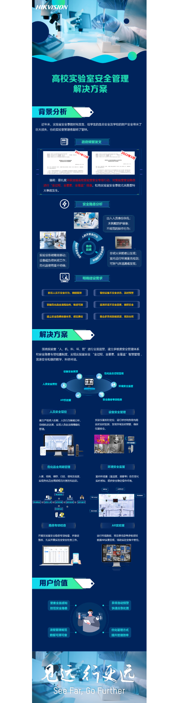 針對實驗室內(nèi)安全環(huán)境因素,圍繞 “人、機、料、法、環(huán)”等關(guān)鍵環(huán)節(jié),實現(xiàn)多方位智能化過程管理,建立全流程閉環(huán)管控的實驗室安全體系,提升實驗室服務(wù)教學(xué)、科研的水平,打造智慧安全實驗環(huán)境,助推高校智慧校園建設(shè)。