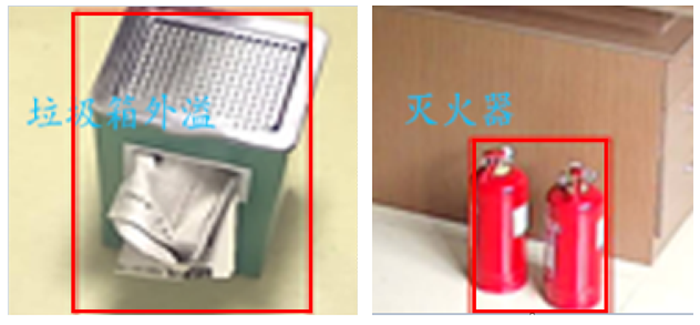 針對銀行網(wǎng)點(diǎn)消防設(shè)備存放處的滅火器進(jìn)行檢測,若未檢測到滅火器設(shè)備及時(shí)預(yù)警上報(bào),通知相關(guān)人員補(bǔ)充設(shè)備,保障銀行網(wǎng)點(diǎn)的消防安全;針對垃圾箱外溢,垃圾箱上方有雜物進(jìn)行檢測,及時(shí)發(fā)現(xiàn)并處理,保證網(wǎng)點(diǎn)環(huán)境清潔。