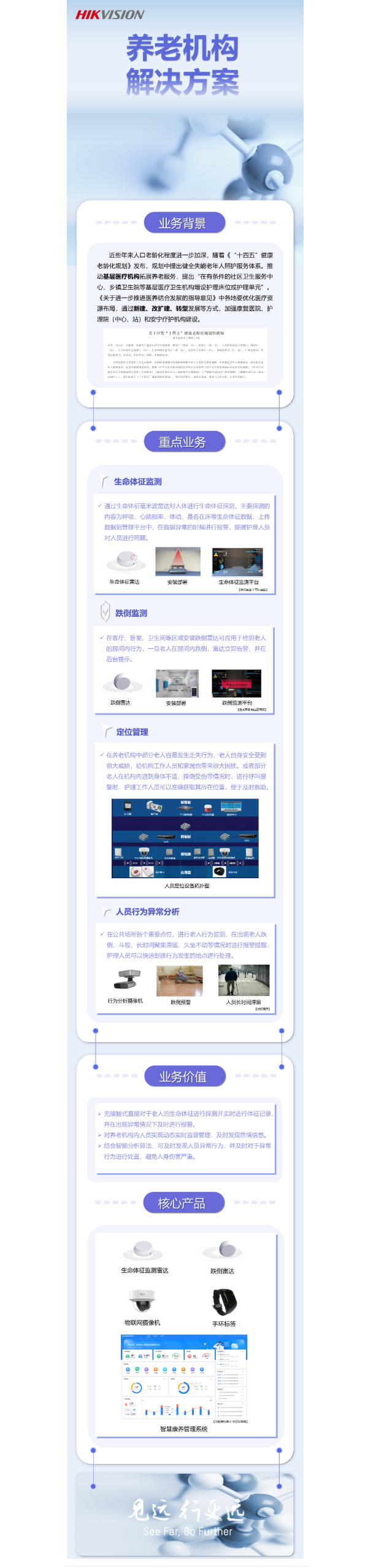 依托于物聯(lián)網(wǎng)技術(shù),無感監(jiān)測康養(yǎng)人員生命體征與人員是否跌倒?jié)M足長者智慧照護(hù)需求,并結(jié)合視頻監(jiān)控等保障康養(yǎng)環(huán)境安全。